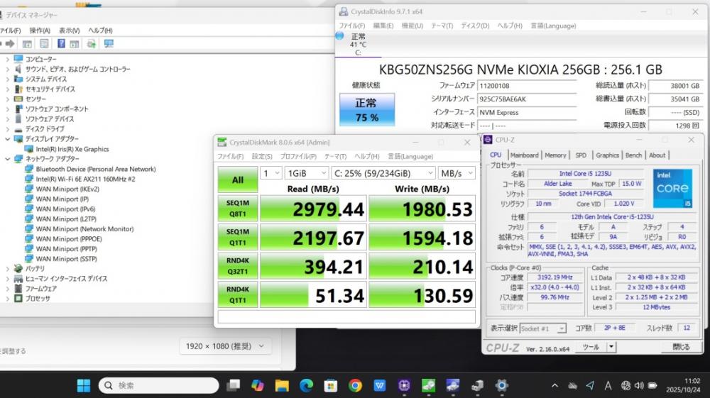 | CPU: 超高速 Intel 10コア 卓越性能 第12世代Core i5-1235u 1.3Ghz、 10コア12スレッド (ターボ・ブースト利用時の最大周波数 4.4GHz) |