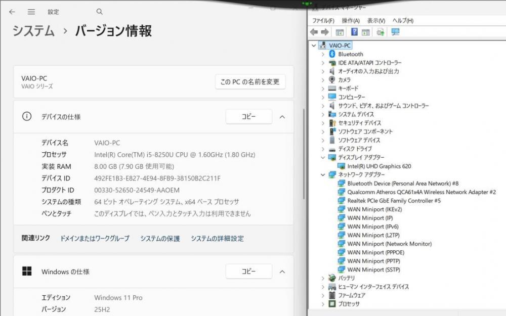 | CPU: 超高速 Intel 高性能 第8世代Core i5-8250U 1.6Ghz、 4コア8スレッド (ターボ・ブースト利用時の最大周波数 3.4GHz) |
