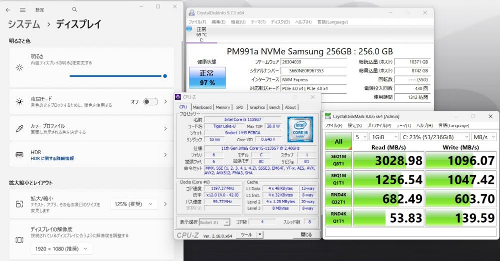 | CPU: 卓越性能 第11世代Core i5-1135G7 2.4Ghz、 4コア8スレッド (ターボ・ブースト利用時の最大周波数 4.2GHz) |