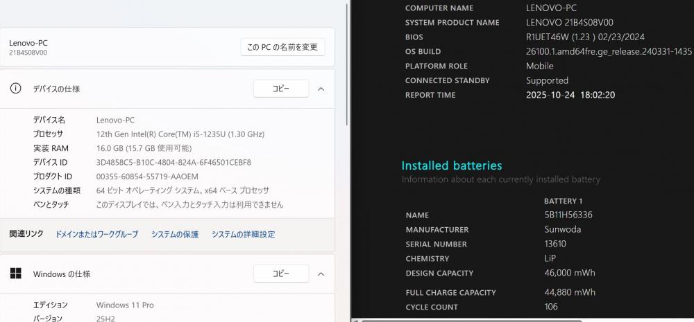 | 型番:     Lenovo   ThinkPad L13 Gen3  |