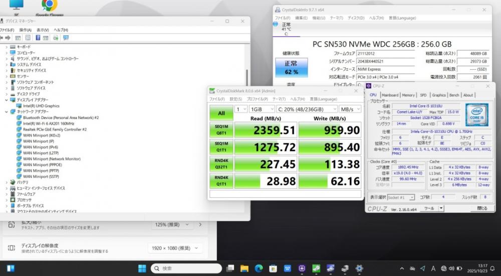 | CPU: 超高速 Intel 超高性能 第10世代Core i5-10310u 1.7Ghz、 4コア8スレッド (ターボ・ブースト利用時の最大周波数 4.4GHz) |