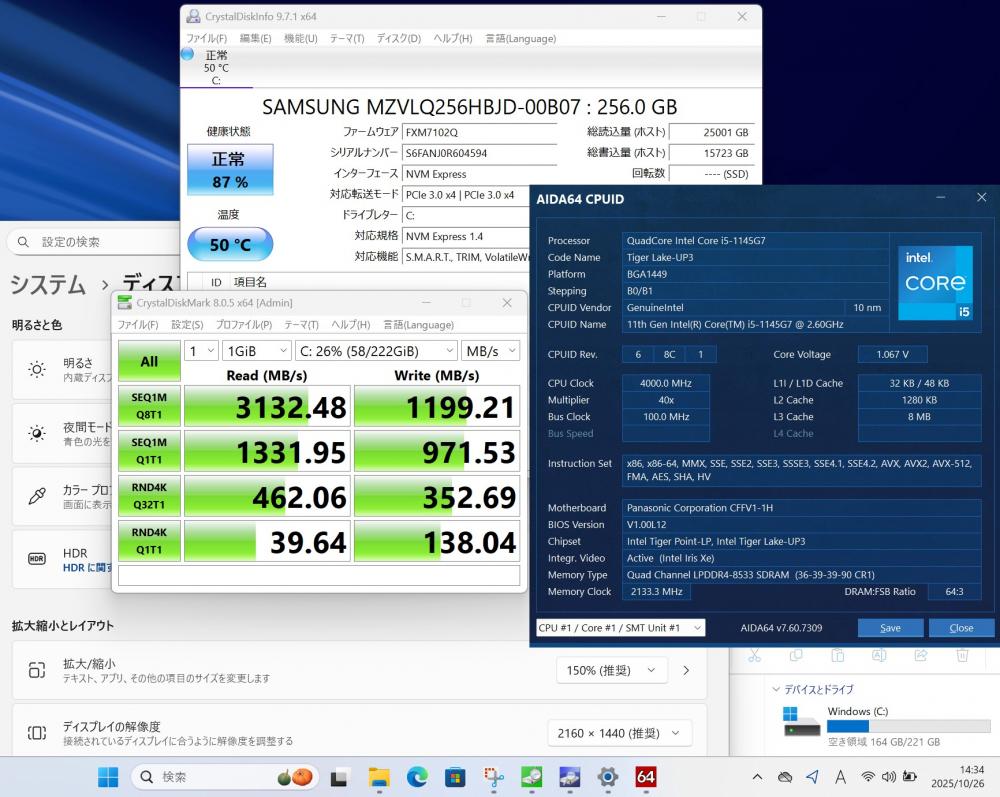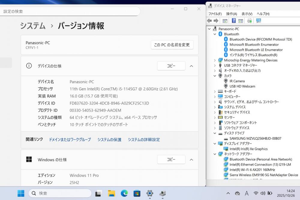 | CPU: 超高速 Intel 卓越性能 第11世代Core i5-1145G7 2.6Ghz、 4コア8スレッド (ターボ・ブースト利用時の最大周波数 4.4GHz) |