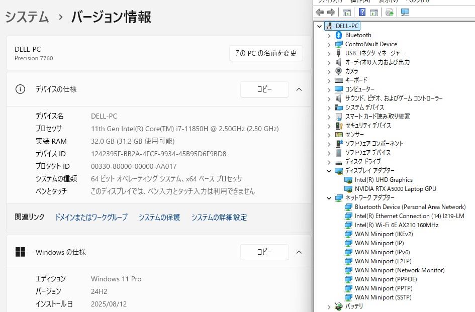 ゲーミングPC  美品 フルHD 17.3型 DELL Precision 7760 Windows11 8コア 第11世代 i7-11850H 32GB NVMe 512GB-SSD NVIDIA RTX A5000 Laptop カメラ 無線Wi-Fi6 Office付き 中古パソコン 管:17