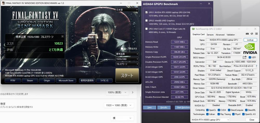 グラフィックス NVIDIA RTX A5000 Laptop 搭載、大容量 16G専用ビデオメモリーvRAM 快適使用体験!