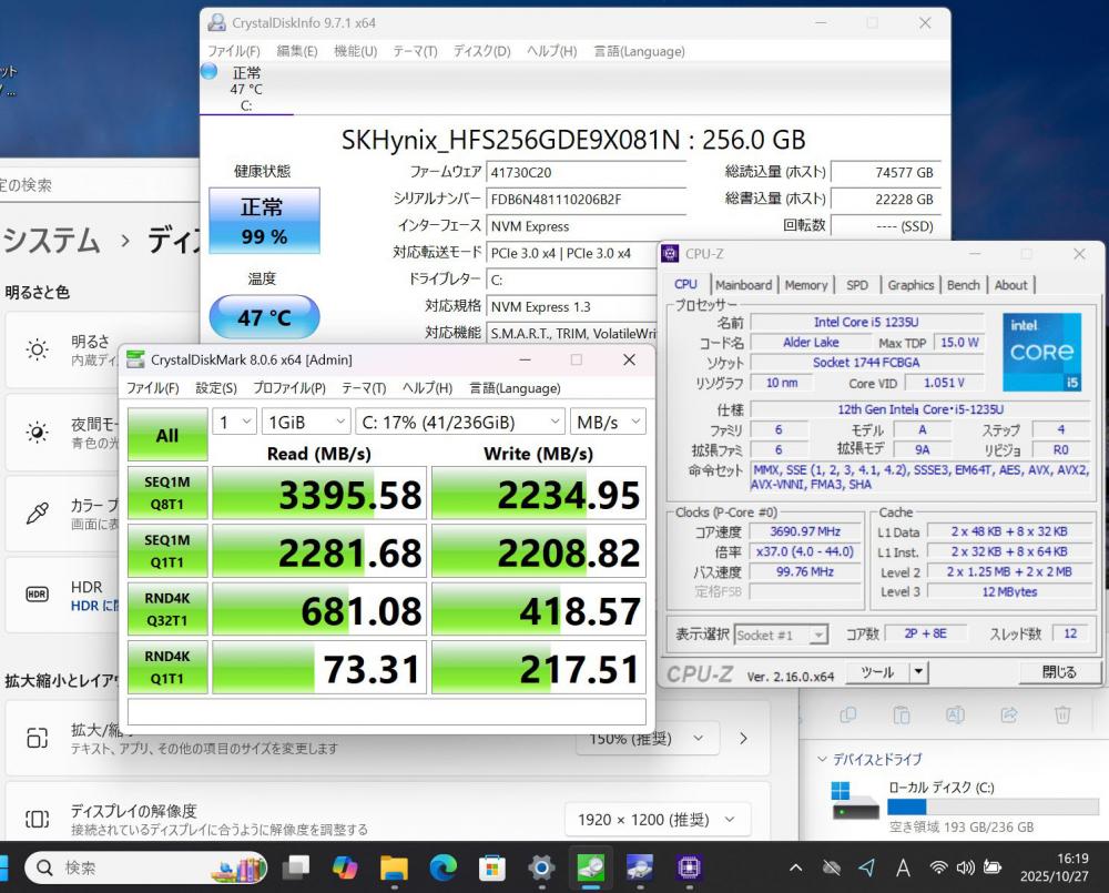 | CPU: 超高速 Intel 10コア 卓越性能 第12世代Core i5-1235u 1.3Ghz、 10コア12スレッド (ターボ・ブースト利用時の最大周波数 4.4GHz) |