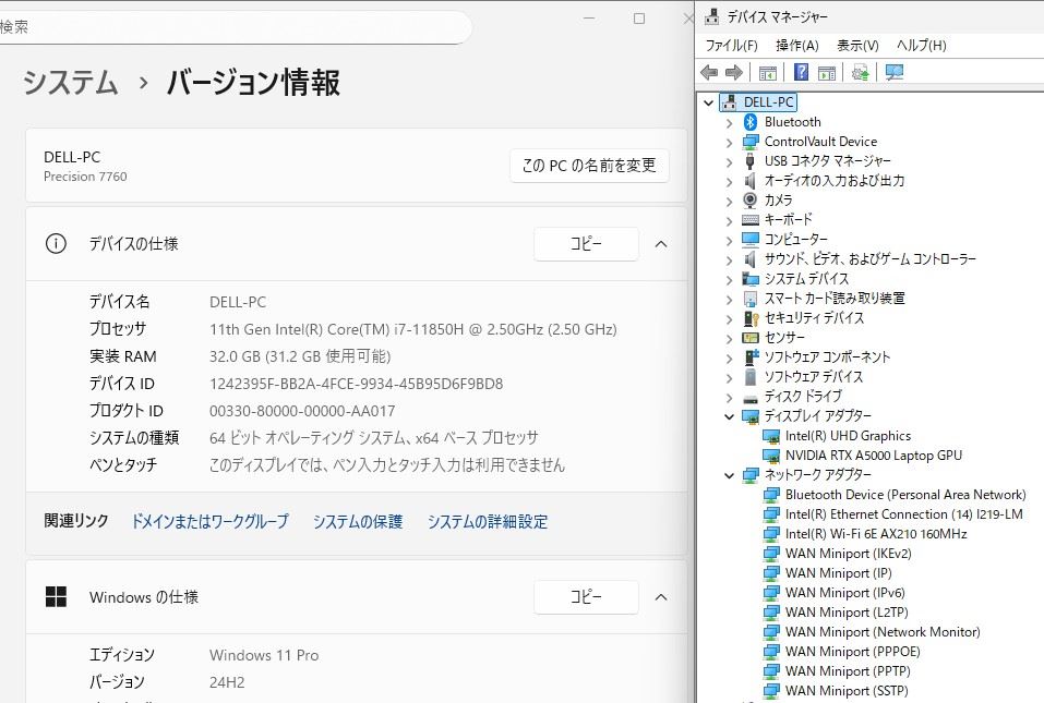 ゲーミングPC  中古美品 フルHD 17.3型 DELL Precision 7760 Windows11 8コア 第11世代 i7-11850H 32GB NVMe 512GB-SSD NVIDIA RTX A5000 Laptop カメラ 無線Wi-Fi6 Office付き 中古パソコン 管: