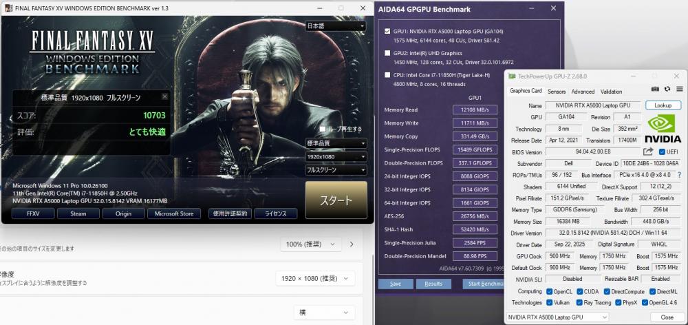 グラフィックス NVIDIA RTX A5000 Laptop 搭載、大容量 16G専用ビデオメモリーvRAM 快適使用体験!