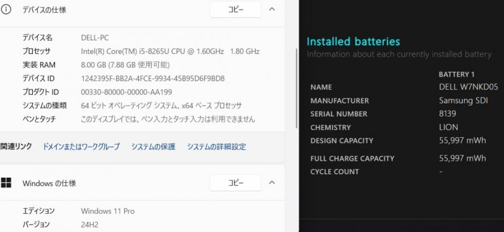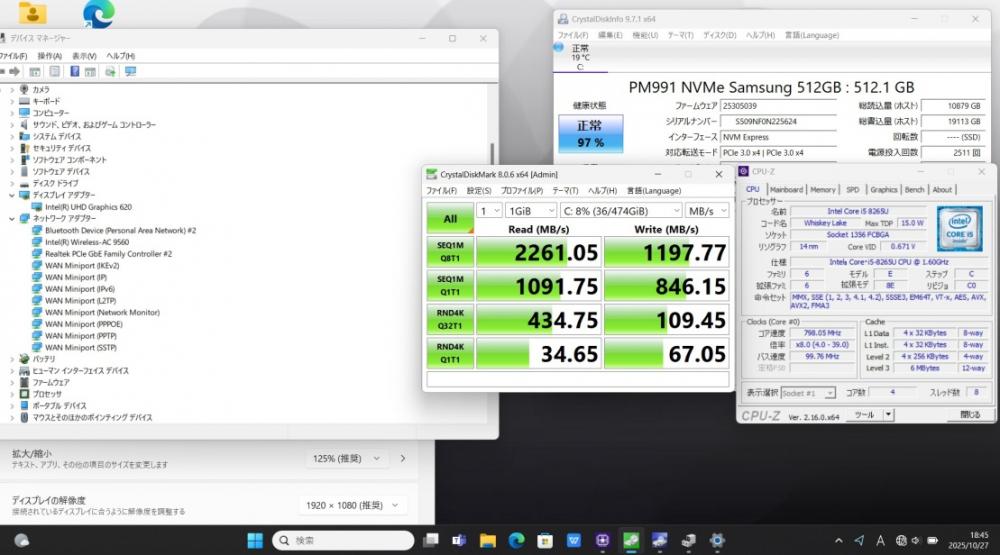 | CPU: 超高速 Intel 高性能 第8世代Core i5-8265u 1.6Ghz、 4コア8スレッド (ターボ・ブースト利用時の最大周波数 3.9GHz) |