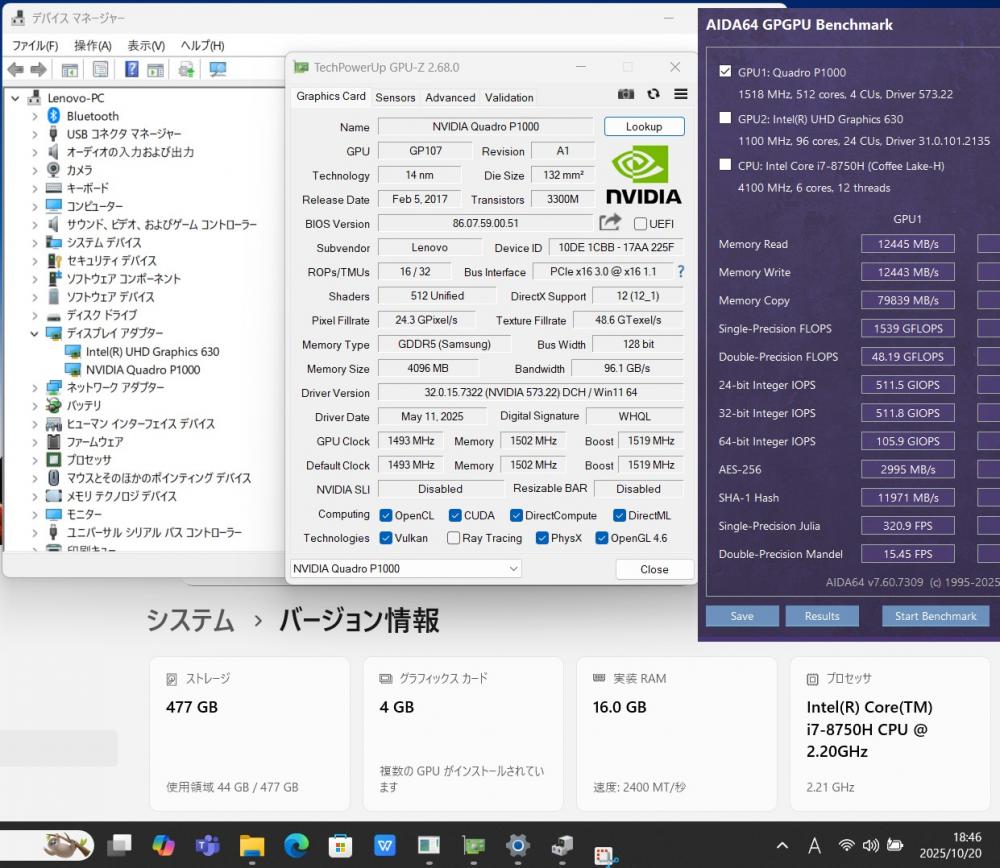 | 型番: Lenovo ThinkPad P52 Type-20MA |