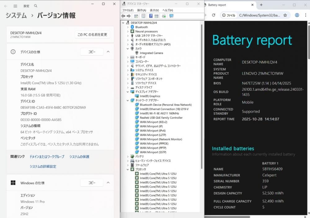 | 型番: Lenovo ThinkPad T16 Gen3 |