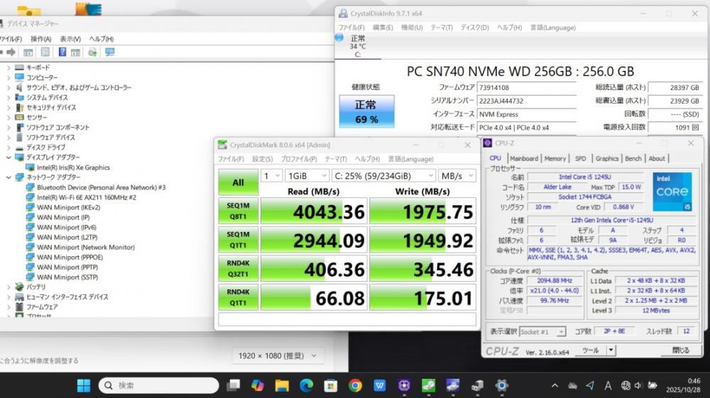 | CPU: 超高速 Intel 10コア 卓越性能 第12世代Core i5-1245u 1.6Ghz、 10コア12スレッド (ターボ・ブースト利用時の最大周波数 4.4GHz) |
