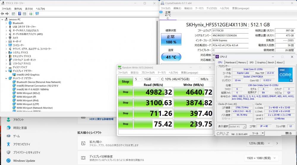 | CPU: 超高速 Intel 10コア 卓越性能 第13世代Core i5-1335U 1.3Ghz、 10コア12スレッド (ターボ・ブースト利用時の最大周波数 4.6GHz) |