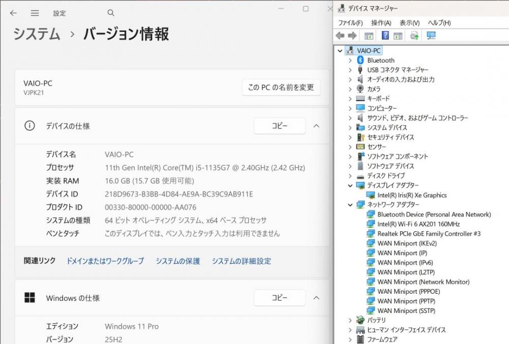 | 型番: SONY VAIO Pro PK VJPK21 |