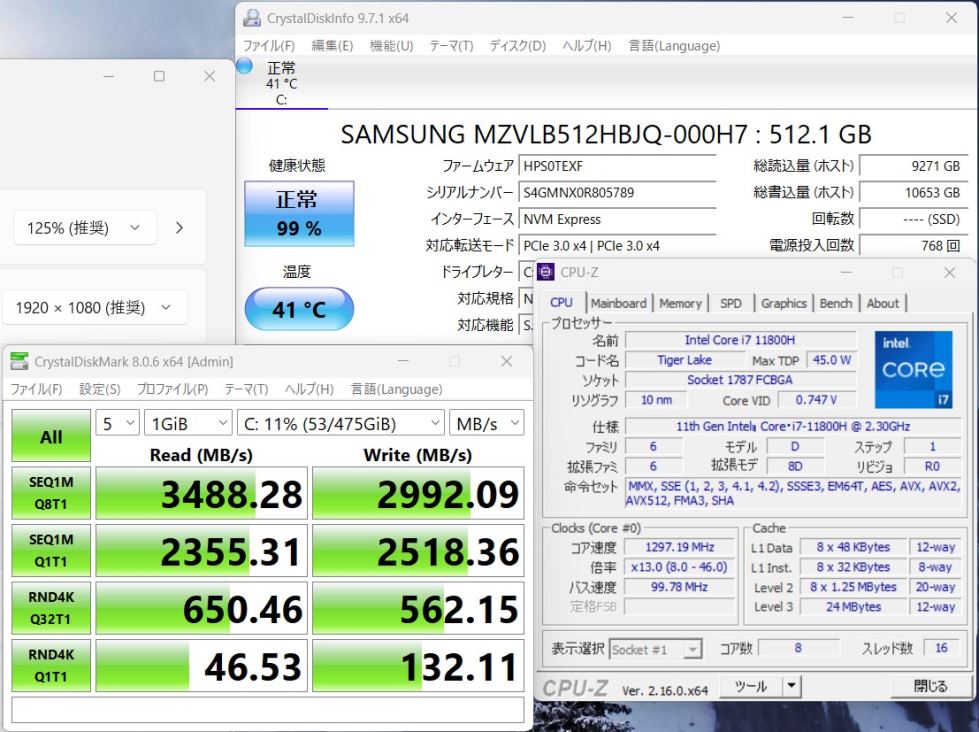 | CPU: 超高速 Intel 8コア 卓越性能 第11世代Core i7-11800H 2.3Ghz、 8コア16スレッド (ターボ・ブースト利用時の最大周波数 4.6GHz) |