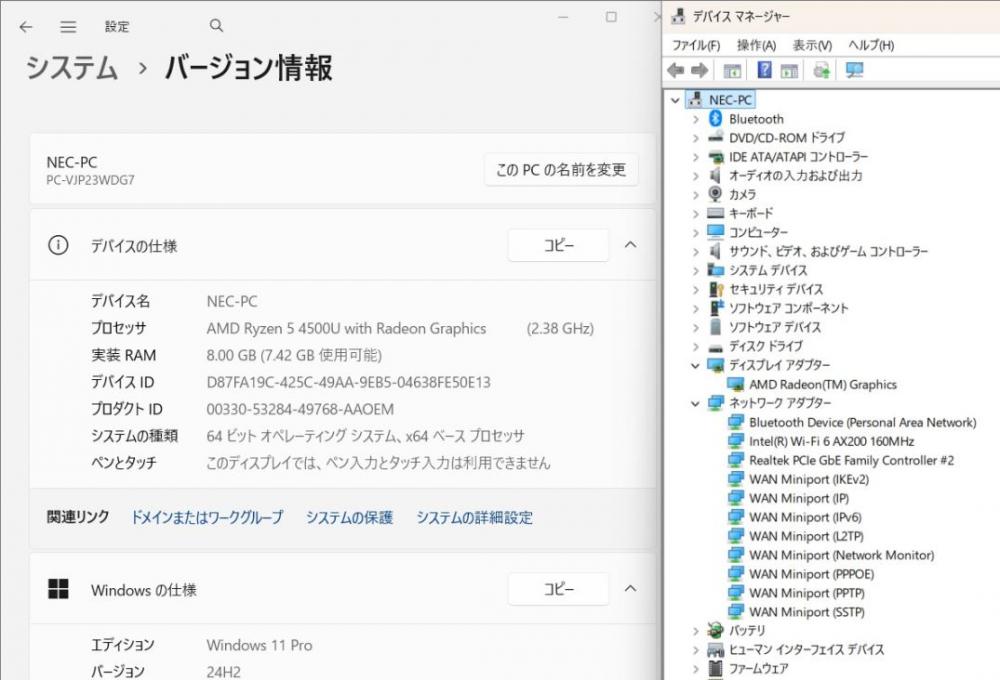 中古美品 フルHD 15.6型 NEC VersaPro VJP23W-7 Windows11 AMD Ryzen 5-4500U 8GB NVMe 512GB-SSD カメラ 無線Wi-Fi6 Office付き 中古パソコン 管:1611v