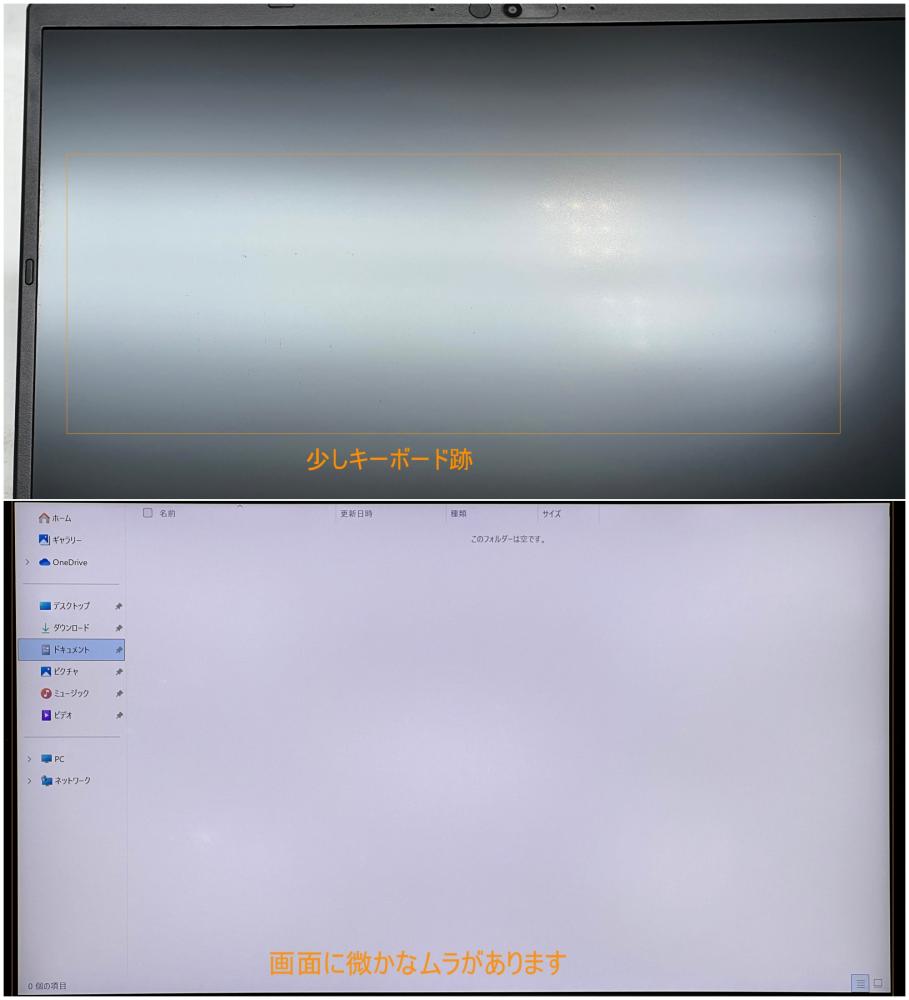 液晶軽いキーボード跡と画面に微かなムラがあります