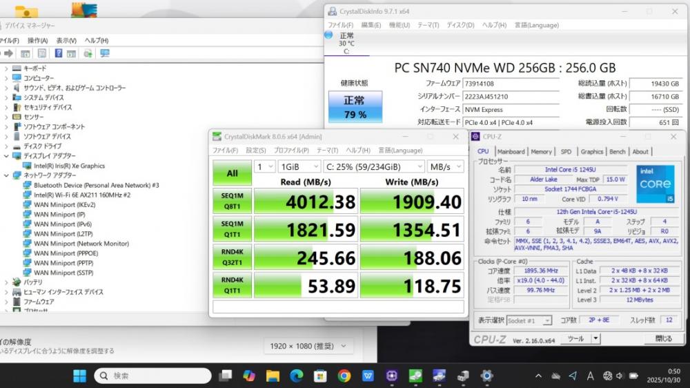 CPU:    超高速 Intel 10コア 卓越性能 第12世代Core i5-1245u 1.6Ghz、 10コア12スレッド (ターボ・ブースト利用時の最大周波数 4.4GHz)