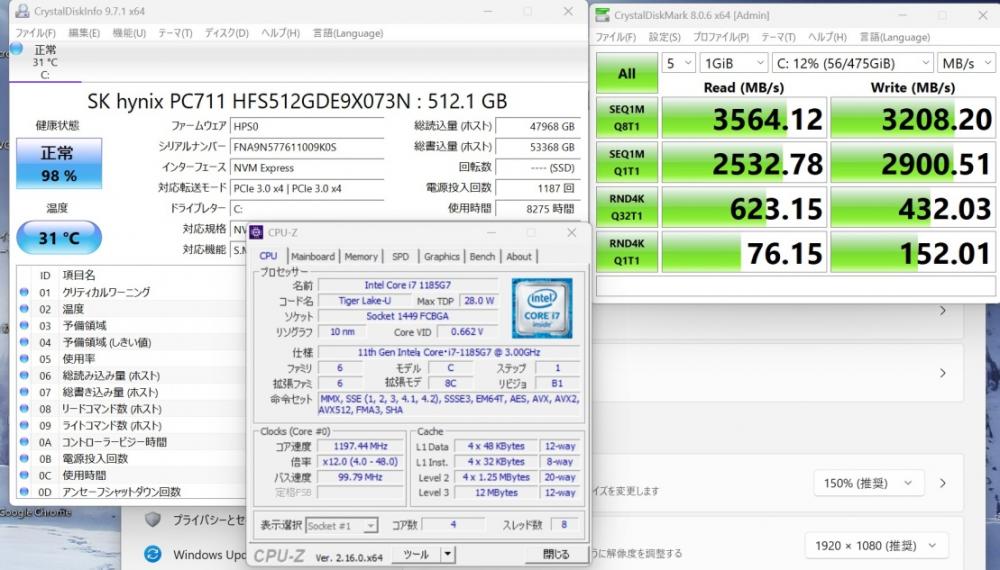 | CPU:    超高速 Intel  卓越性能 第11世代Core i7-1185g7 3.0Ghz、 4コア8スレッド (ターボ・ブースト利用時の最大周波数 4.8GHz) |