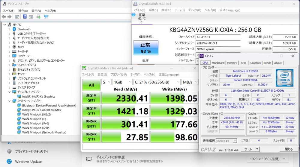 | CPU:    超高速 Intel  卓越性能 第11世代Core i5-1135G7 2.4Ghz、 4コア8スレッド (ターボ・ブースト利用時の最大周波数 4.2GHz) |