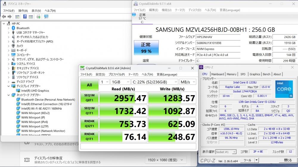 | CPU:    超高速 Intel  10コア 卓越性能 第13世代Core i5-1335U 1.3Ghz、 10コア12スレッド (ターボ・ブースト利用時の最大周波数 4.6GHz) |