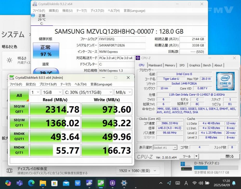 | CPU: 超高速 Intel 卓越性能 第11世代Core i5-1145G7 2.6Ghz、 4コア8スレッド (ターボ・ブースト利用時の最大周波数 4.4GHz) |