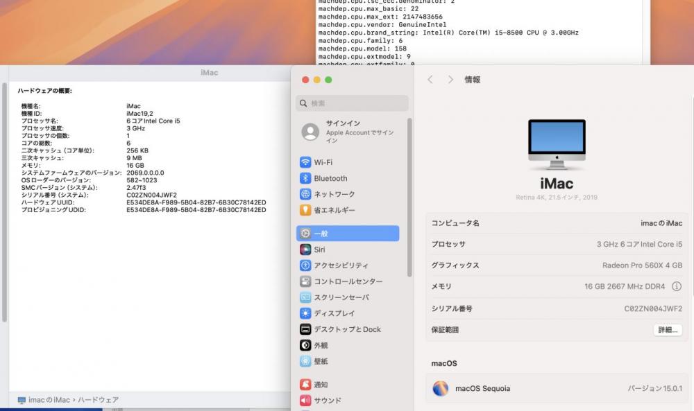 | 型番: Apple iMac A2116 (Retina 4K,2019) |