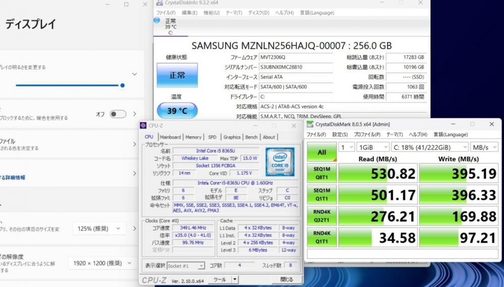 | CPU: 超高速 Intel 高性能 第8世代Core i5-8365U 1.6Ghz、 4コア8スレッド (ターボ・ブースト利用時の最大周波数 4.1GHz) |