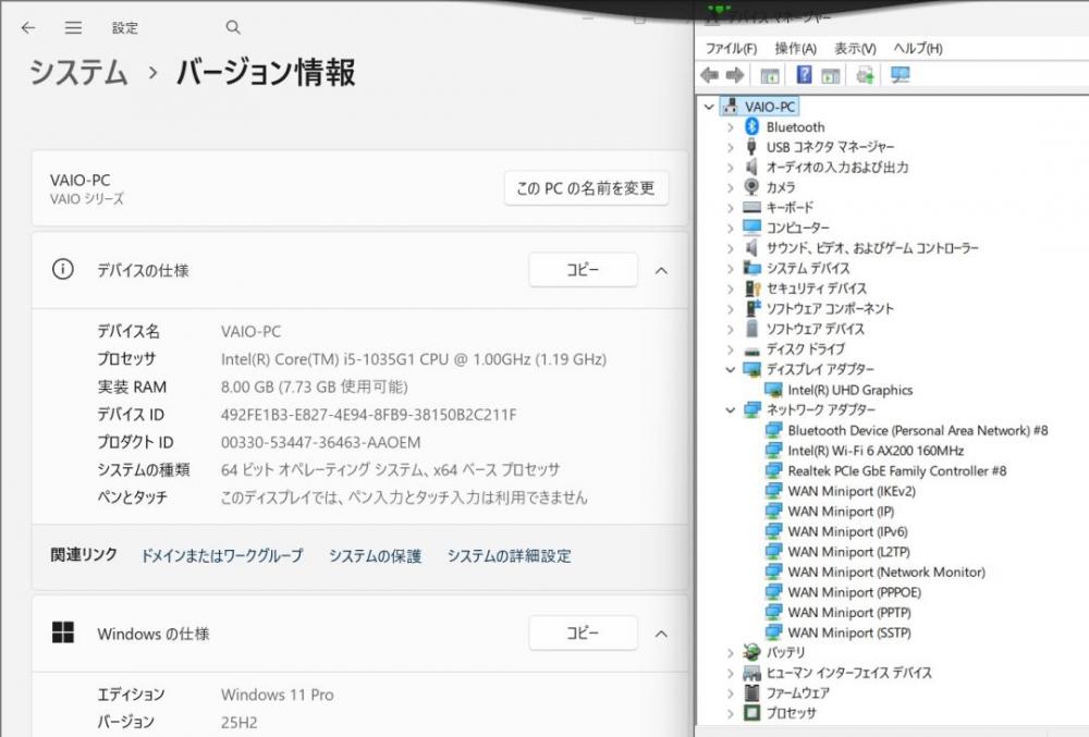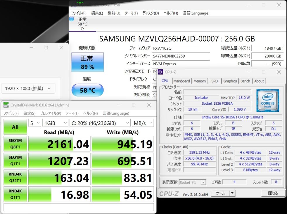 | CPU: 超高速 Intel 超高性能 第10世代Core i5-1035G1 1.0Ghz、 4コア8スレッド (ターボ・ブースト利用時の最大周波数 3.6GHz) |