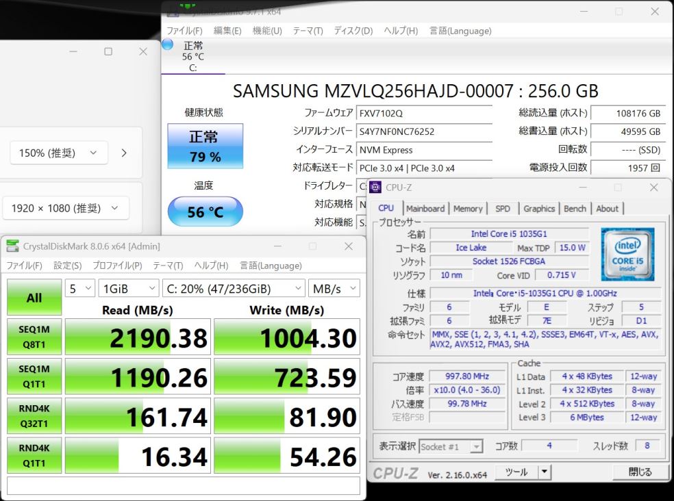 CPU:    超高速 Intel 超高性能 第10世代Core i5-1035G1 1.0Ghz、 4コア8スレッド (ターボ・ブースト利用時の最大周波数 3.6GHz)