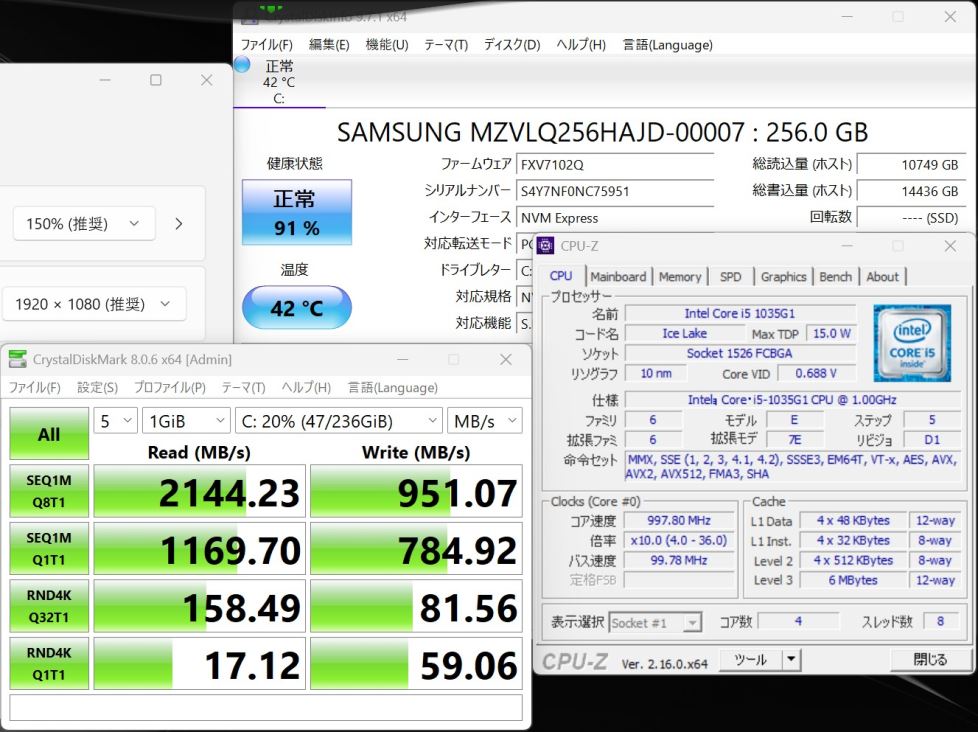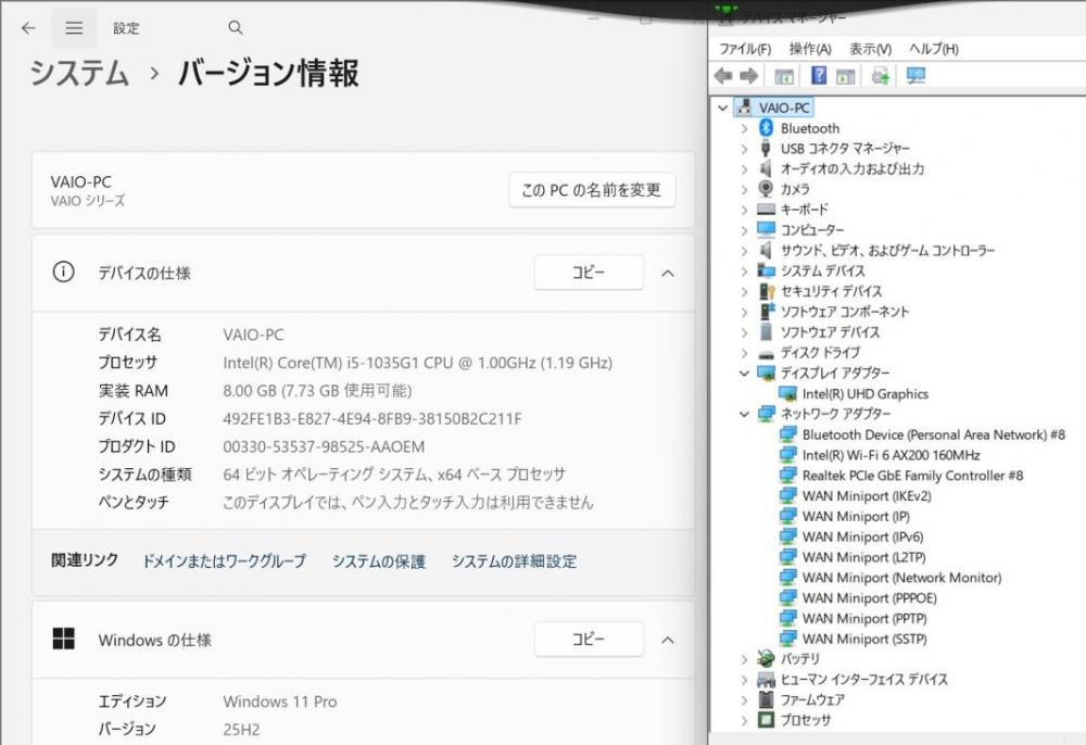 CPU:    超高速 Intel 超高性能 第10世代Core i5-1035G1 1.0Ghz、 4コア8スレッド (ターボ・ブースト利用時の最大周波数 3.6GHz)