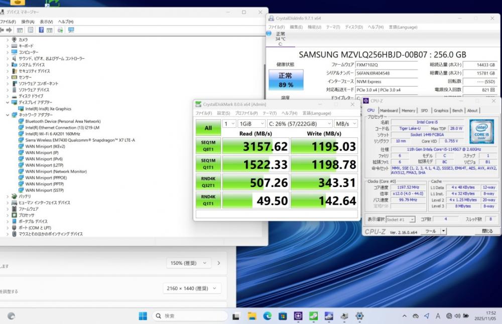 | CPU: 超高速 Intel 卓越性能 第11世代Core i5-1145g7 2.6Ghz、 4コア8スレッド (ターボ・ブースト利用時の最大周波数 4.4GHz) |