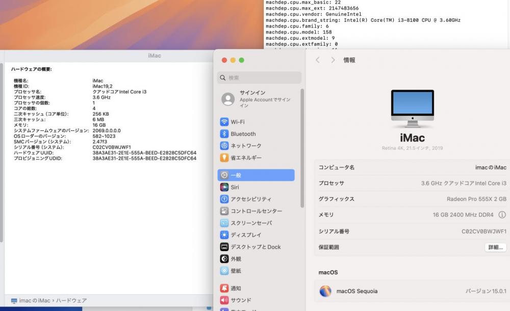 | 型番: Apple iMac A2116 (Retina 4K,2019) |