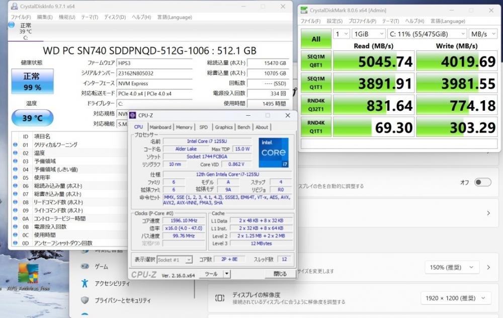 | CPU: 超高速 Intel 10コア 卓越性能 第12世代Core i7-1255u 1.7Ghz、 10コア12スレッド (ターボ・ブースト利用時の最大周波数 4.7GHz) |