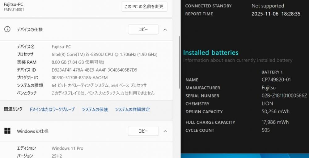 中古 フルHD 13.3型 Fujitsu LIFEBOOK U938S Windows11 第8世代 i5-8350u 8GB 256GB-SSD カメラ 無線 Office付き 中古パソコン 管:0934r