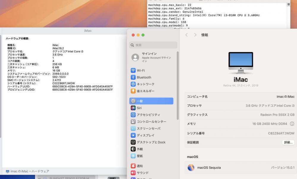 | 型番: Apple iMac A2116 (Retina 4K,2019) |