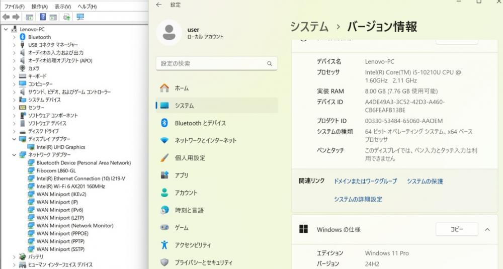 | CPU: 超高速 Intel 超高性能 第10世代Core i5-10210u 1.6Ghz、 4コア8スレッド (ターボ・ブースト利用時の最大周波数 4.2GHz) |