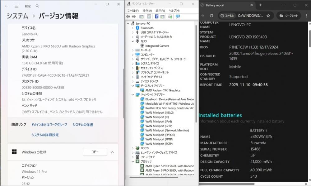 | 型番: Lenovo ThinkPad X13 Gen2 |