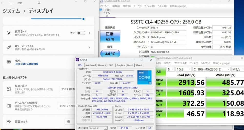 | CPU: 超高速 Intel 10コア 卓越性能 第12世代Core i5-1235u 1.3Ghz、 10コア12スレッド (ターボ・ブースト利用時の最大周波数 4.4GHz) |