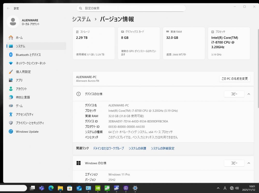 | 型番: DELL ALIENWARE Aurora R8 |