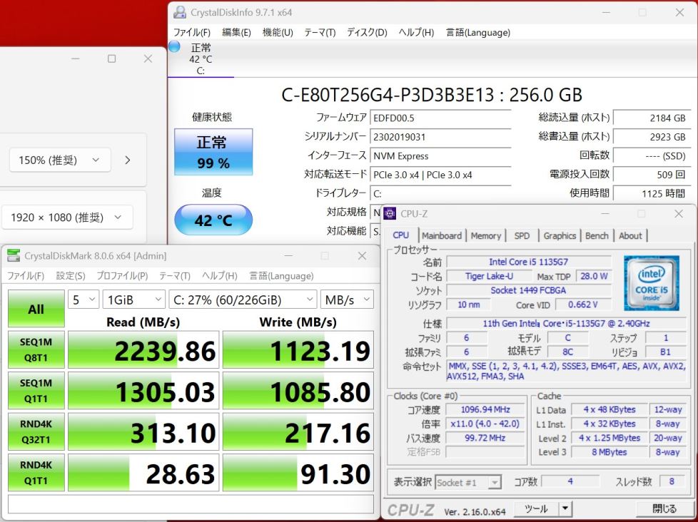 | CPU: 超高速 Intel 卓越性能 第11世代Core i5-1135G7 2.4Ghz、 4コア8スレッド (ターボ・ブースト利用時の最大周波数 4.2GHz) |