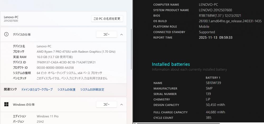 | 型番: Lenovo ThinkPad P14s Gen1 |