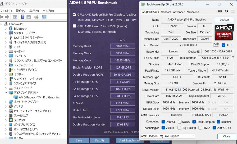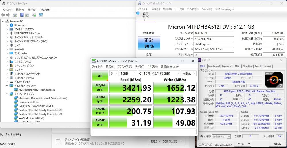 | CPU: 超高速 8コア 超高性能 AMD Ryzen 7-4750U 1.7Ghz、 8コア16スレッド (ターボ・ブースト利用時の最大周波数 4.1GHz) |