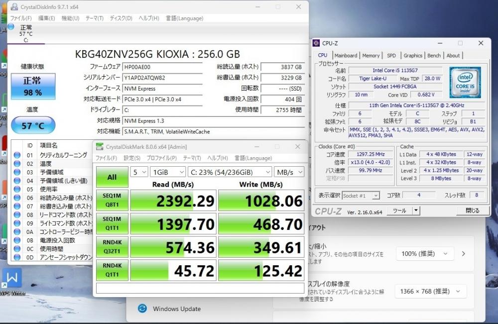 | CPU: 超高速 Intel 卓越性能 第11世代Core i5-1135g7 2.4Ghz、 4コア8スレッド (ターボ・ブースト利用時の最大周波数 4.2GHz) |