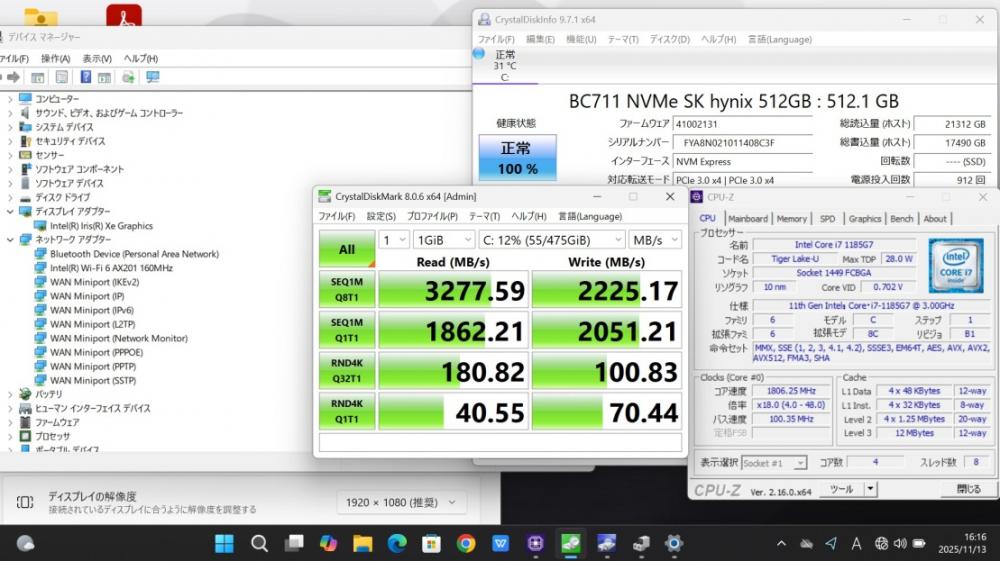 | CPU: 超高速 Intel 卓越性能 第11世代Core i7-1185g7 3.0Ghz、 4コア8スレッド (ターボ・ブースト利用時の最大周波数 4.8GHz) |
