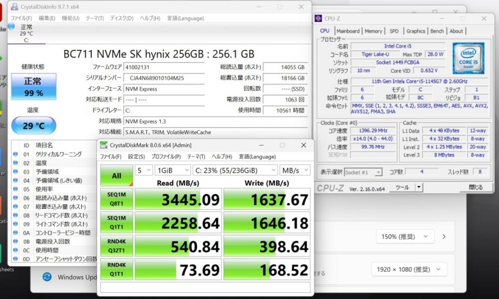 | CPU: 超高速 Intel 卓越性能 第11世代Core i5-1145g7 2.6Ghz、 4コア8スレッド (ターボ・ブースト利用時の最大周波数 4.4GHz) |