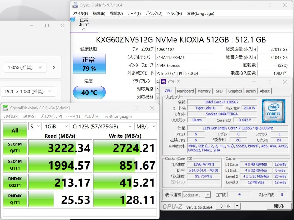| CPU: 超高速 Intel 卓越性能 第11世代Core i7-1185G7 3.0Ghz、 4コア8スレッド (ターボ・ブースト利用時の最大周波数 4.8GHz) |
