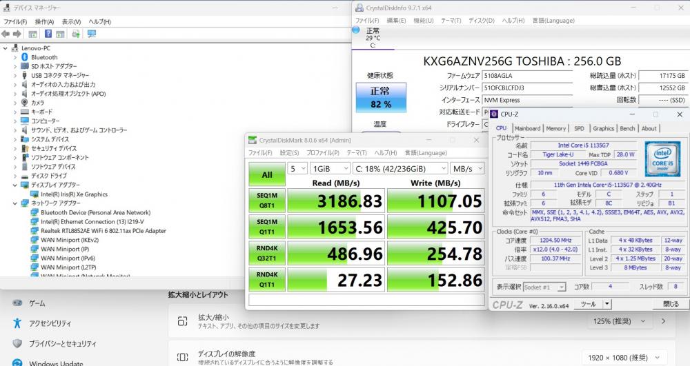 | CPU: 超高速 Intel 卓越性能 第11世代Core i5-1135G7 2.4Ghz、 4コア8スレッド (ターボ・ブースト利用時の最大周波数 4.2GHz) |