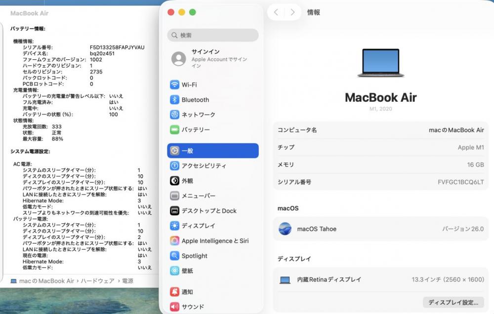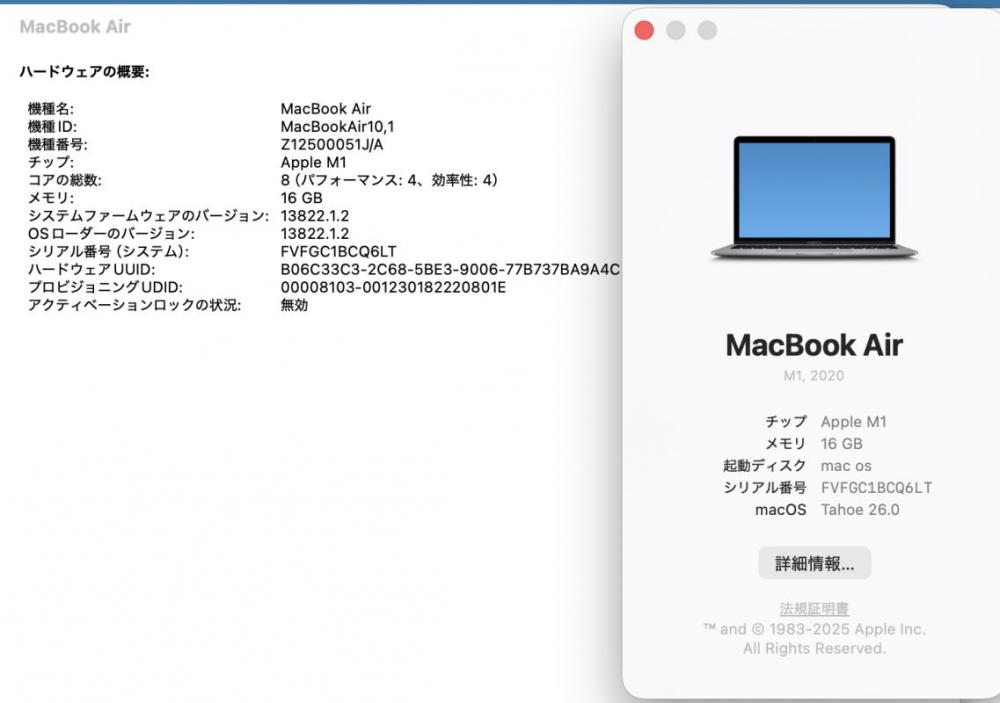 中古 2K対応 13.3型 Apple MacBook Air A2337 (2020年式) グレー macOS 26 Tahoe 卓越性能Apple-M1 16GB NVMe 512GB-SSD カメラ 無線 中古パソコン 管:1356h