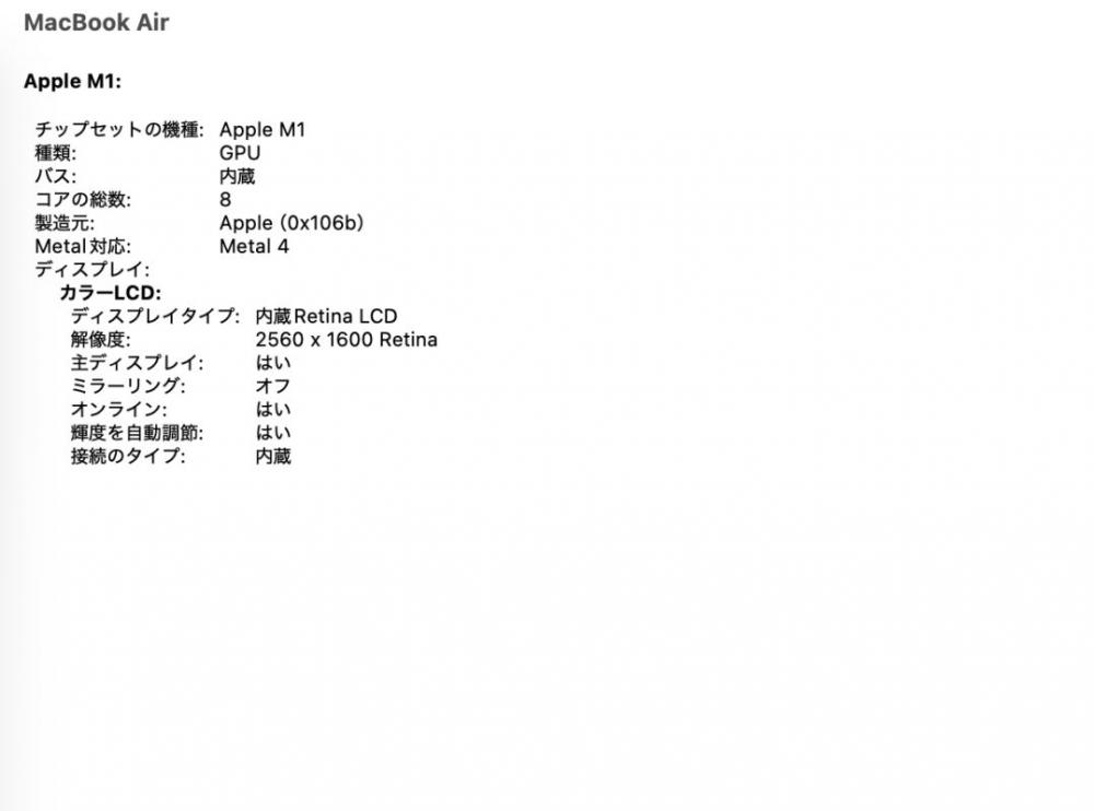 型番:     Apple  MacBook Air A2337 (2020年式) グレー