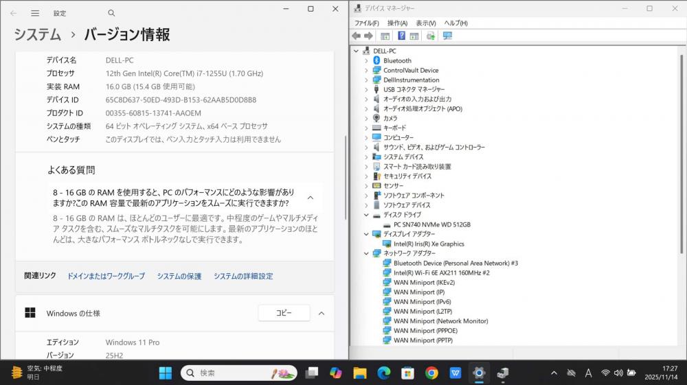 | OS: 最新 Windows11 Pro 64bitアップグレード済み、Microsoft正規版 認証済み 安心使用。 (搭載OSがWindows10に無料変更可能。ご希望の場合はご購入の際、備考欄/掲示板にご記載ください [出荷予定日+1日] ) |